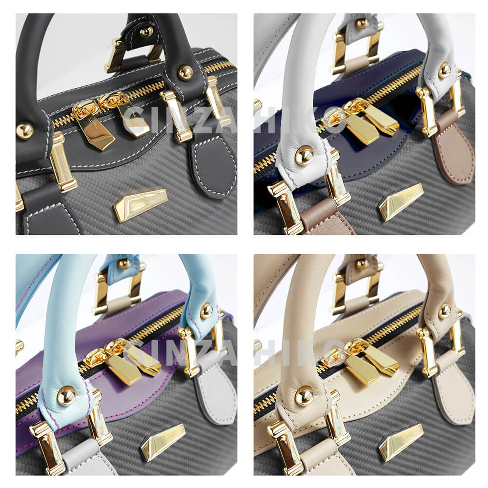- ソフトカーボンはカーボンファイバーを幾重にも重ねてフィルムコーティングした素材で、ビジネスバッグやトートバッグ等の超軽量の柔らかなバッグに使われている