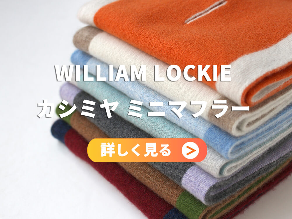 As a limited item created by William Lockie, Scotland’s renowned knitwear house, in custom color combinations specified by Ginza HIKO, this mini scarf received an exceptional response last year. Building on that success, we expanded the color variations significantly this season and introduced a larger lineup at the start of autumn and winter.